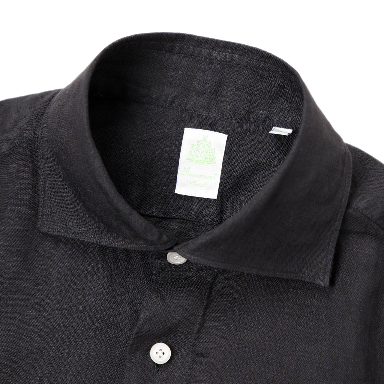 フィナモレ / 製品洗い リネン カッタウェイ シャツ / SIMONE BALI / 046098 C0650 / ブラック
